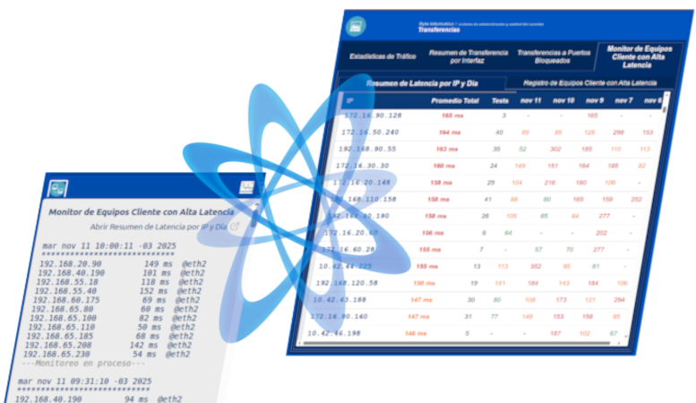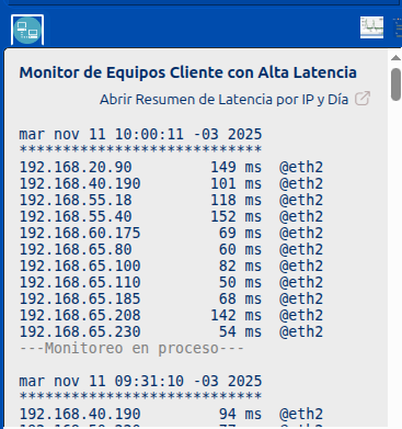 - Se genera un registro de altas latencias detectadas que incluye la dirección IP y el tiempo de respuesta.