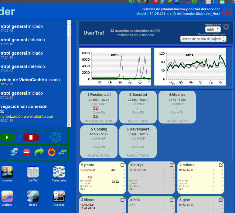 - El sistema centrado en UserTraf, o sea, acceso rápido y representación gráfica, visual, de todo lo que pasa en el servidor y la red